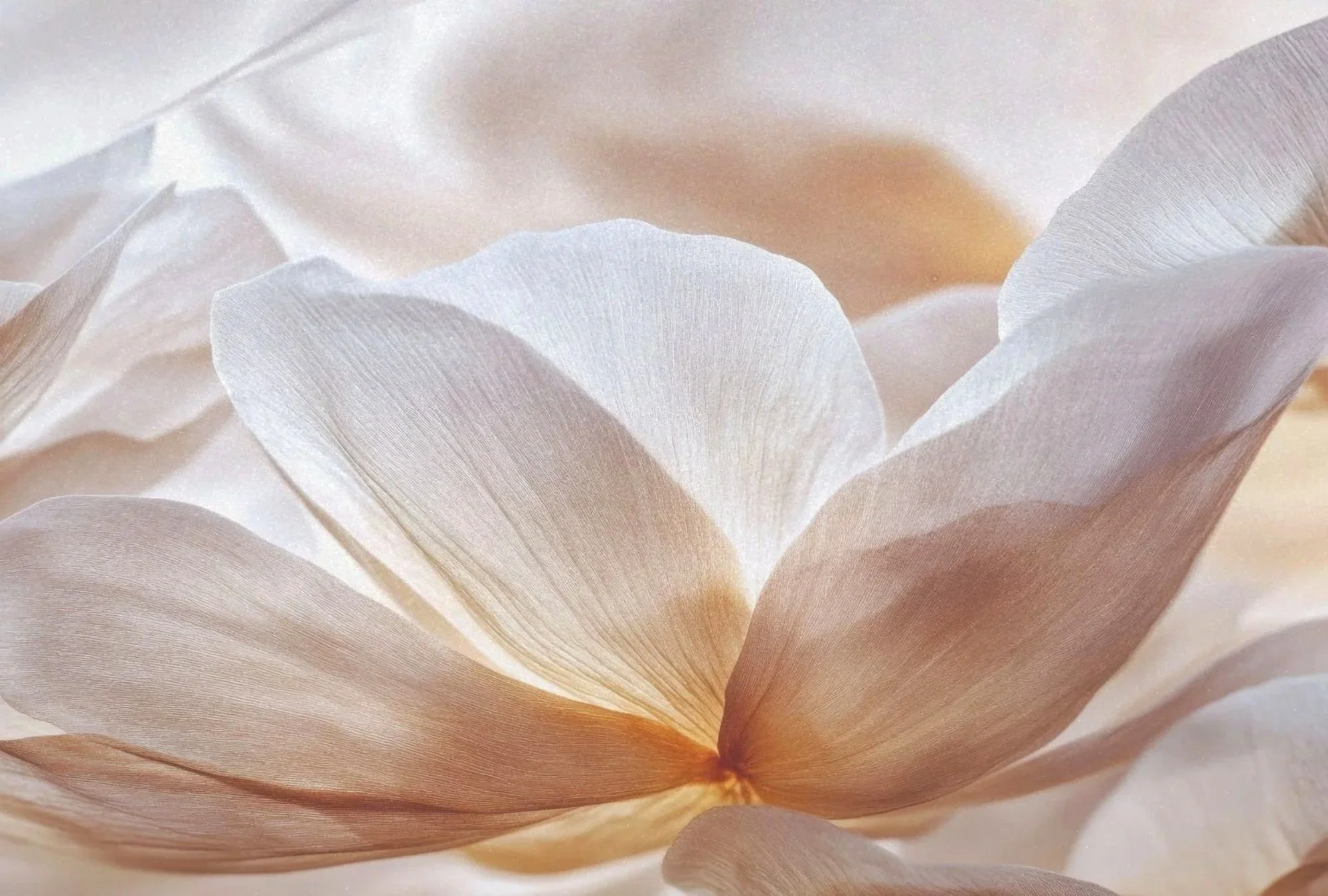 Close-up of cream and red-tipped carnations against a beige wall with shadows.